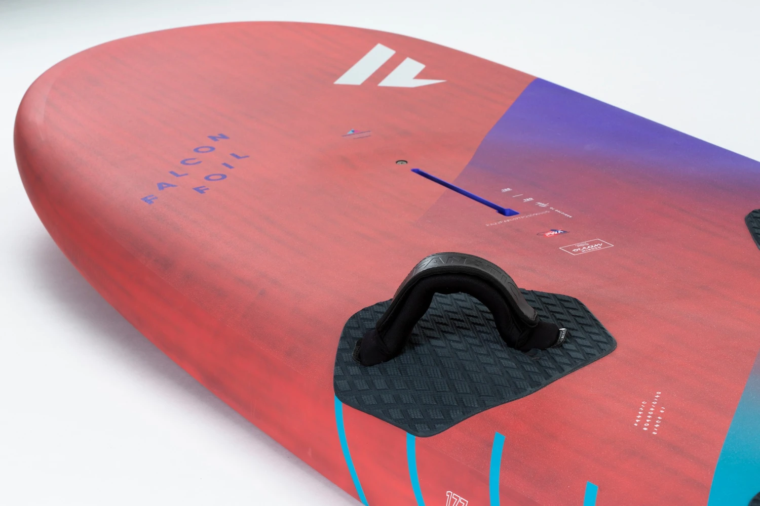 Unsere Foiling-Rennmaschine – der Falcon Foil â wurde entwickelt, um bereits bei der leichtesten Brise zu fliegen und hat auf der Regattabahn maximale Kontrolle ĂŒber ein reinrassiges Racing-Foil. FĂŒr 2022 haben wir drei neue Modelle fĂŒr High-End Foil-Slalom entwickelt: Den 144l fĂŒr High Wind Slalom/Long Distance Racing und Speed, den 177l fĂŒr Freefoil/Slalom, Frauen und leichtere Fahrer und den 188l fĂŒr den PWA World Cup. Alle drei Modelle sind zu 100% auf Foil/Slalom Racing ausgerichtet. Der Falcon Foil 199 Version hingegen wurde gezielt fĂŒr den Einsatz bei Kursrennen entwickelt Das breite Heck sorgt fĂŒr einen gut ausbalancierten Stand weit auĂen auf der Kante, was entscheidend fĂŒr optimale Kontrolle bei Topp-Speed ist â egal ob auf Amwind- Downwind- oder Halbwindkursen. Der Shape hat eine optimierte Position fĂŒr gröĂere Racesegel, um das Foil noch hĂ€rter ans Leistungslimit zu pushen. Die Nose kommt mit angeschrĂ€gten Kanten und einem ausgeprĂ€gten V, was gelegentliche Aufsetzer abfedert ohne abzubremsen. Zur Saison 2022 kommt unser Falcon 177 zusĂ€tzlich auch in unserer preiswerteren BXF-Technologie.