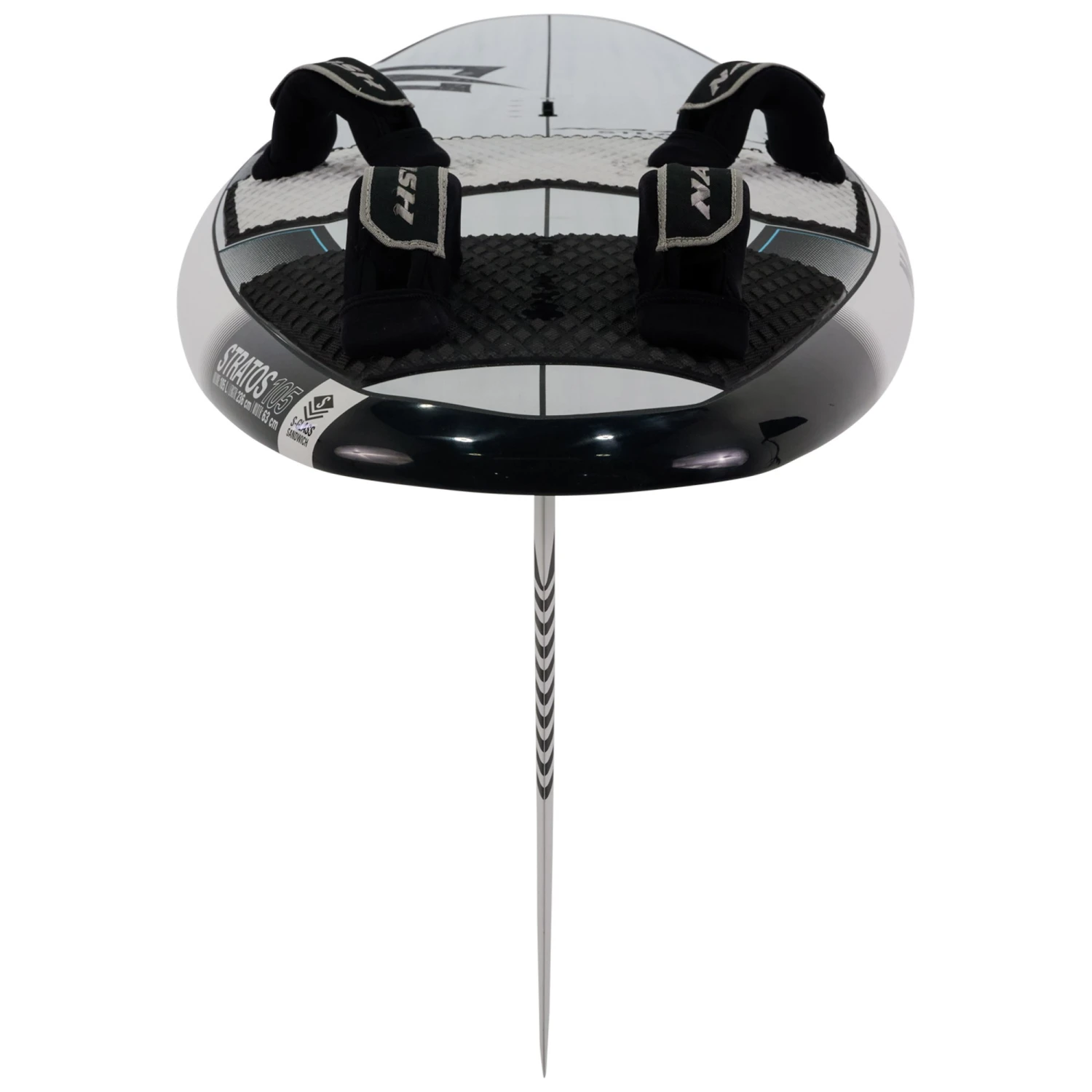 Early planing, speed and control are the essentials of any free ride board and the Stratos line fits those characteristics perfectly. The rocker line accommodates a smooth but swift transition from non planing to planing with little effort. The V-bottom shape makes it easy to ride flat while offering enough release to power up and shift to a more supportive riding style over the fin. Its various foot strap insert positions provide the option to ride in 5th gear out on the rail or further inboard in a more relaxed cruising mode.
