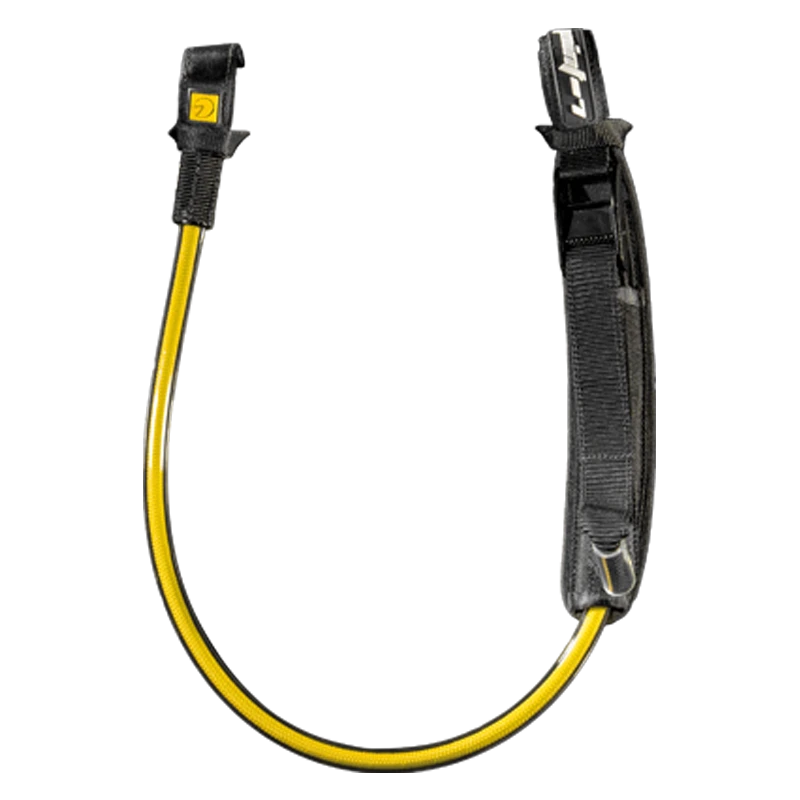 - Dicke Gummischlaufe zum Verkürzen der Trapeztampen, um bei leichtem Wind mehr Leistung zu erzielen. Die Schlaufe ist 3 Finger breit und Du kannst die Länge der Tampen ändern, wenn Du mit vollem Speed surfst.