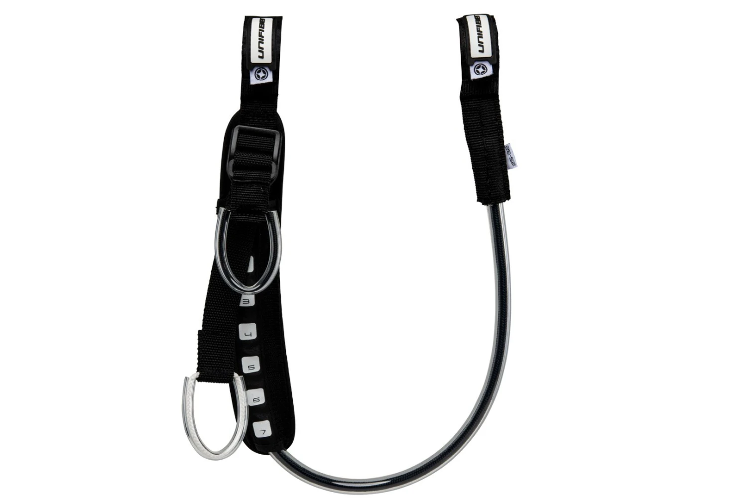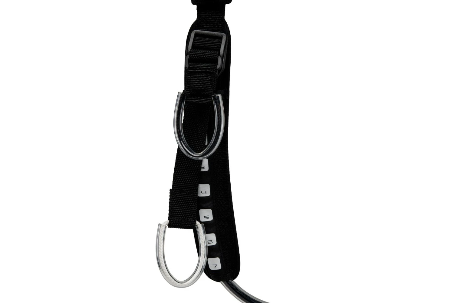 A high-grade plastic buckle allows smooth length adjustment while sailing and prevents slippage. Loops to lengthen and shorten the lines are produced in different colors for easy identification while sailing.