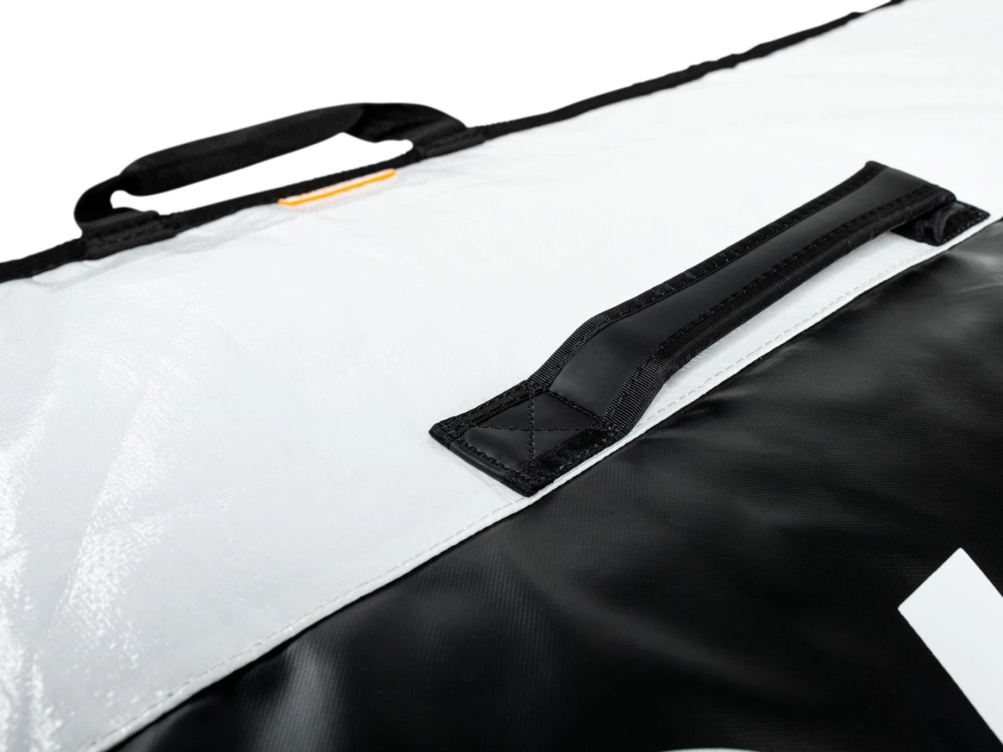 Wie alle anderen Pro Luxury-Boardbags sind auch die Pro Foil-Boardbags aus Tarpaulin mit einem starken WRP-Gewebe (Water-Repellent Polyester) auf der Oberseite und gepunkteten PVC-Nose- und Tailpads für den besten Schutz gefertigt.